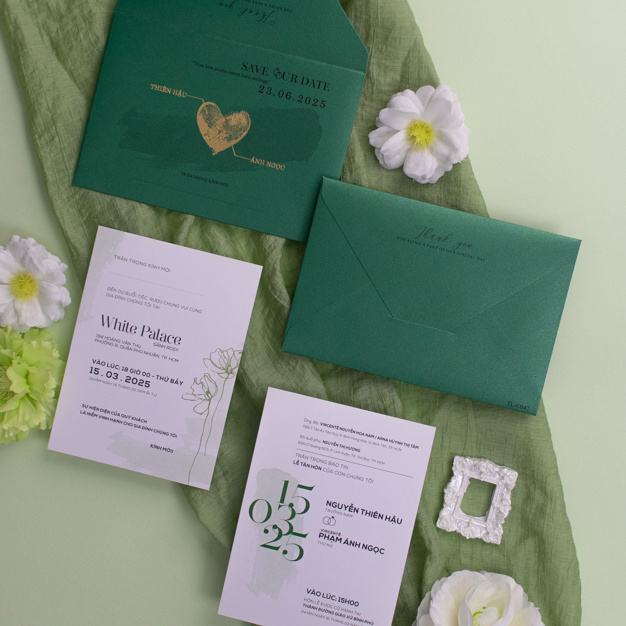 Thiệp Cưới Emerald Green Dấu Ấn Vân Tay Ép Kim Gắn Kết Vĩnh Cửu - TL-C047