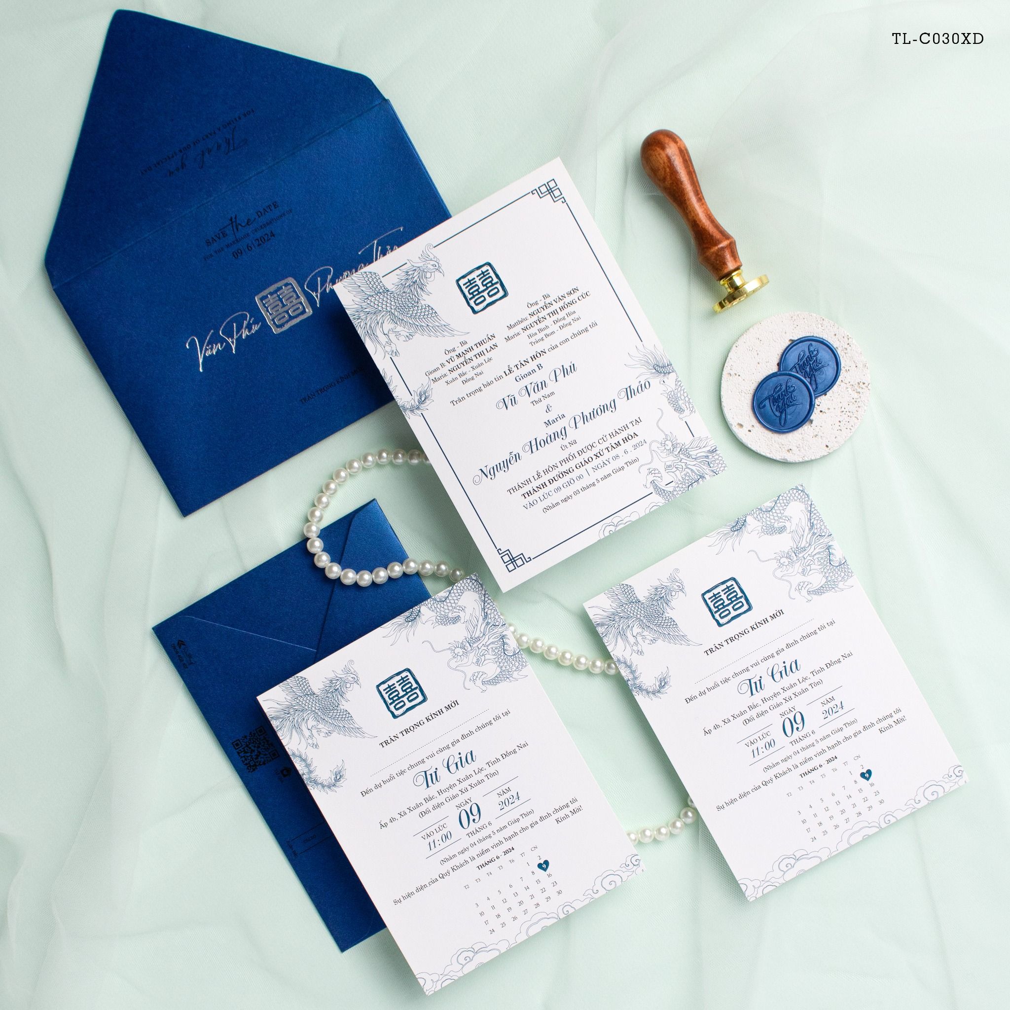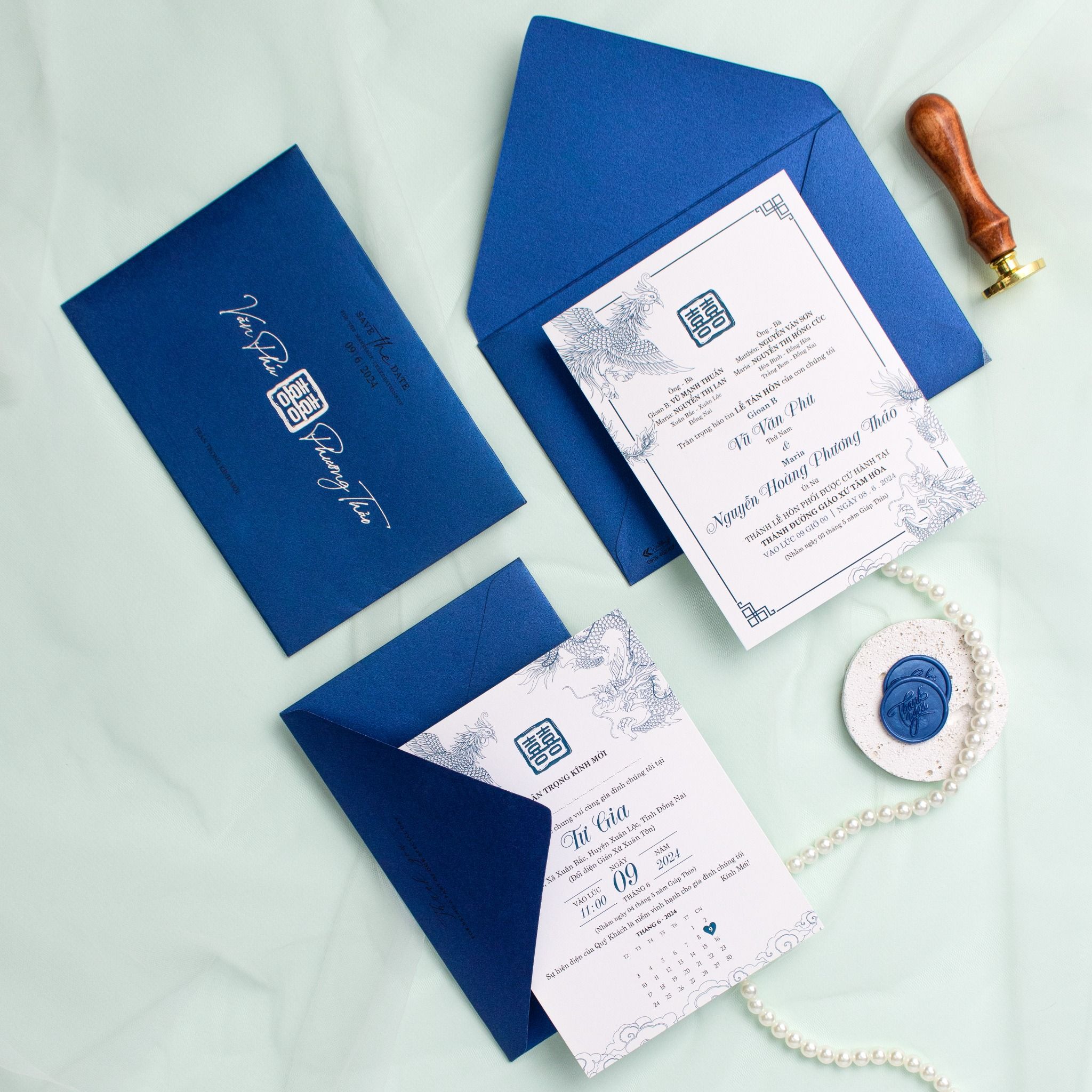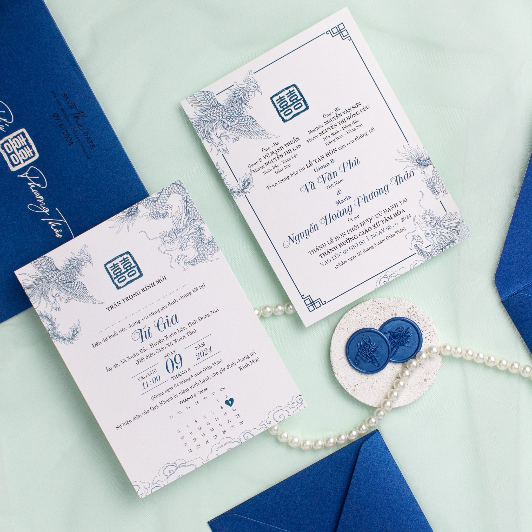 Thiệp Cưới Long Phụng Hòa Minh Bản Giao Hưởng Uyên Ương Giữa Sắc Xanh Cao Quý