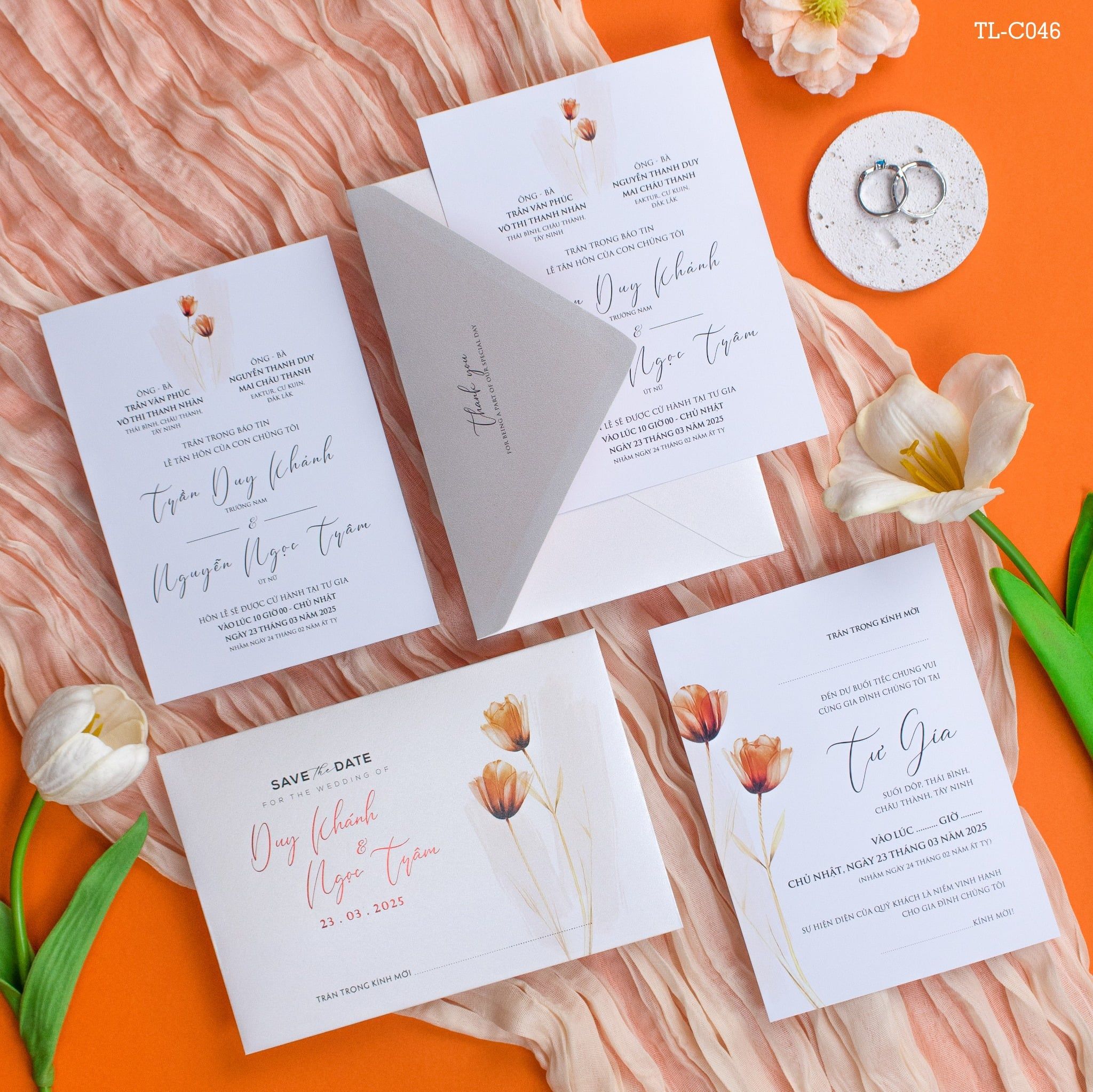 Thiệp Cưới Sắc Hoa Tulip Cam Nét Hiện Đại Đầy Kiêu Sa - TL-C046