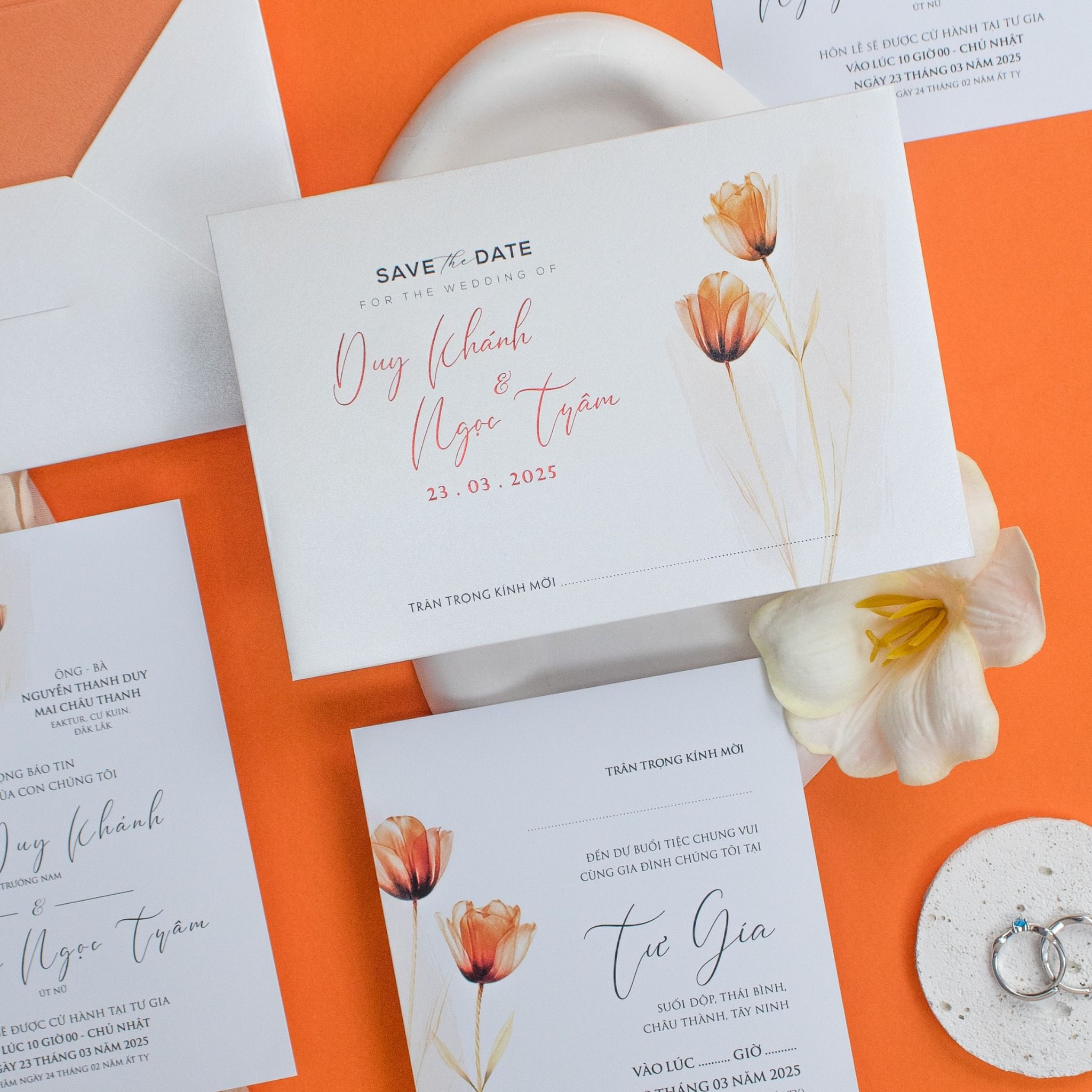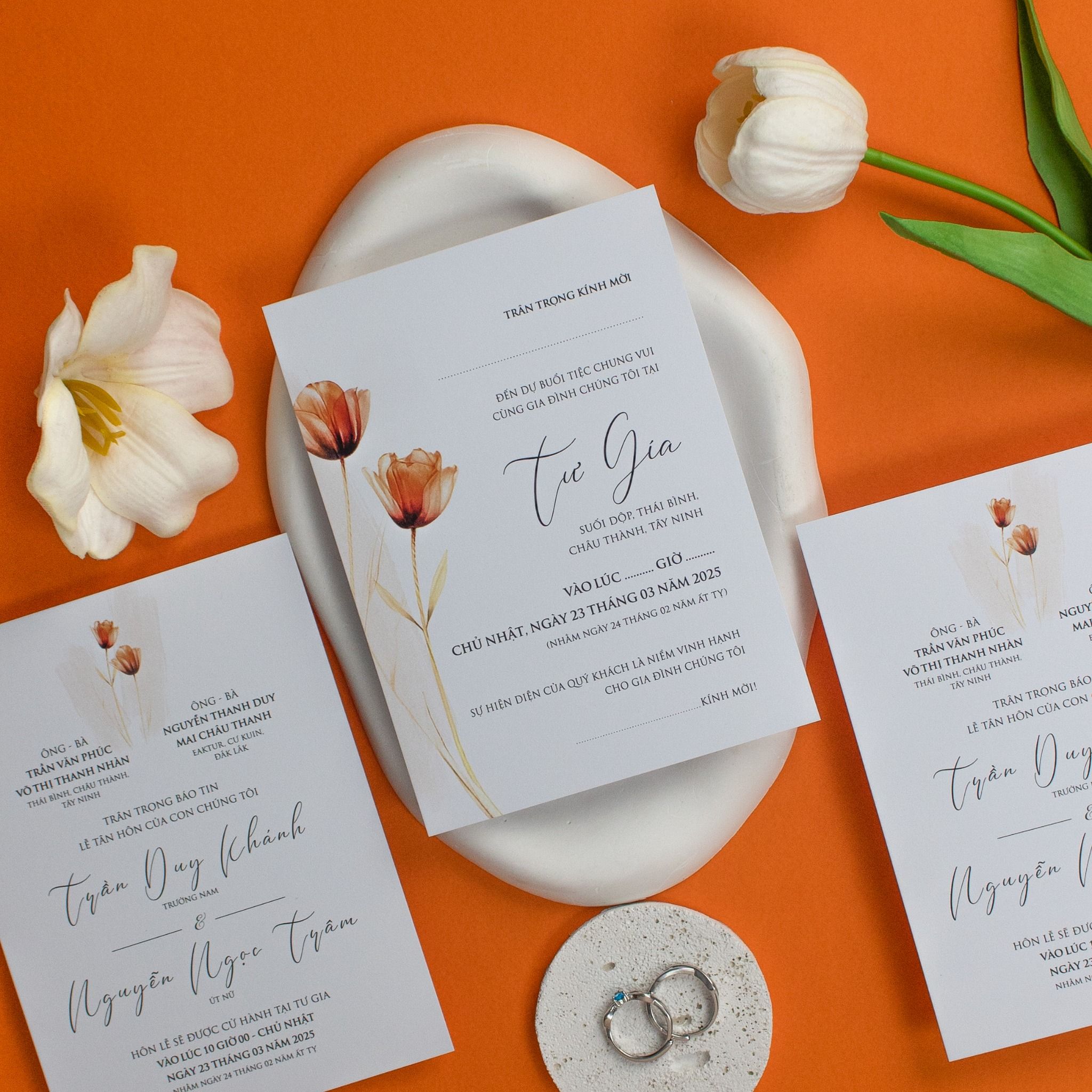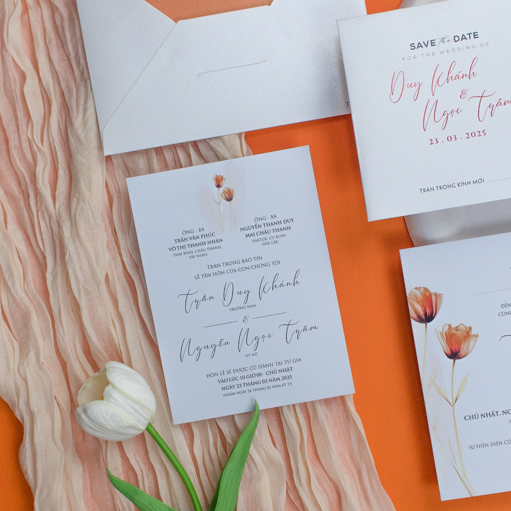 Thiệp Cưới Sắc Hoa Tulip Cam Nét Hiện Đại Đầy Kiêu Sa