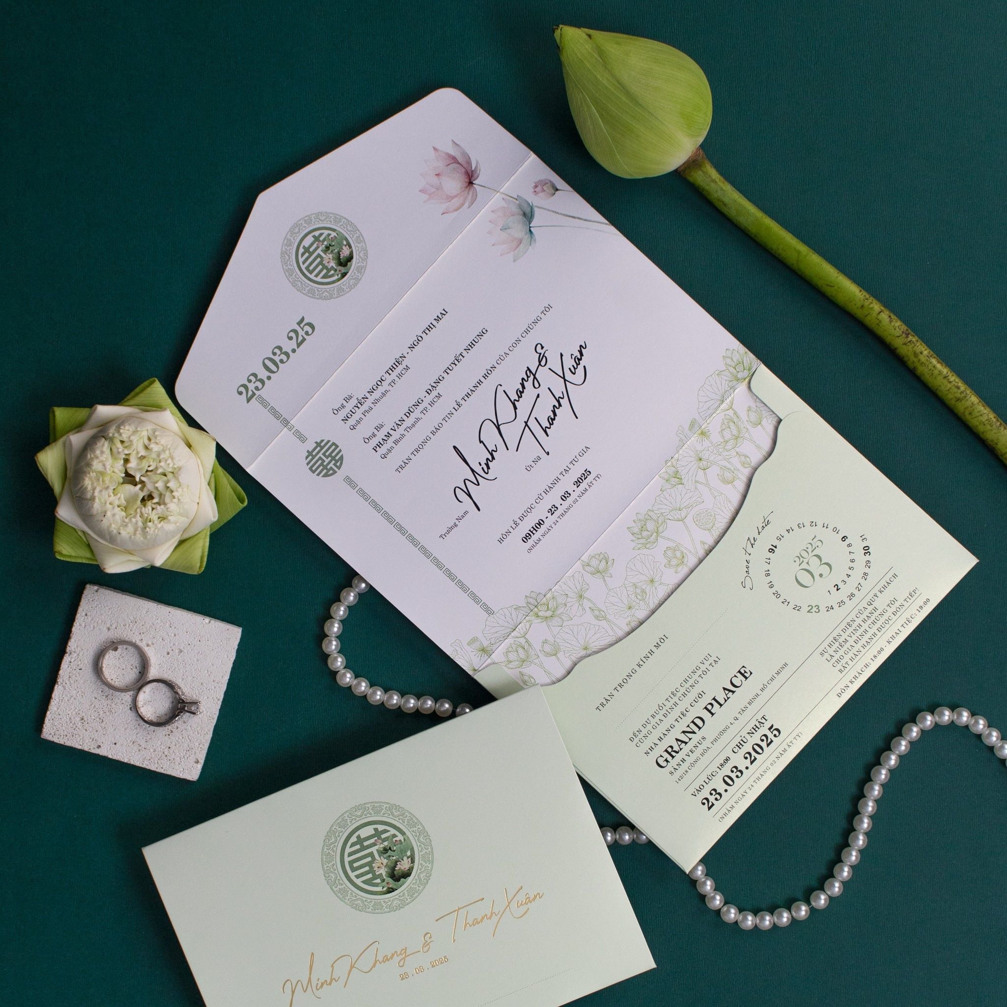 Thiệp Cưới Hoa Sen Tinh Khiết, Gói Trọn Nét Đẹp Truyền Thống