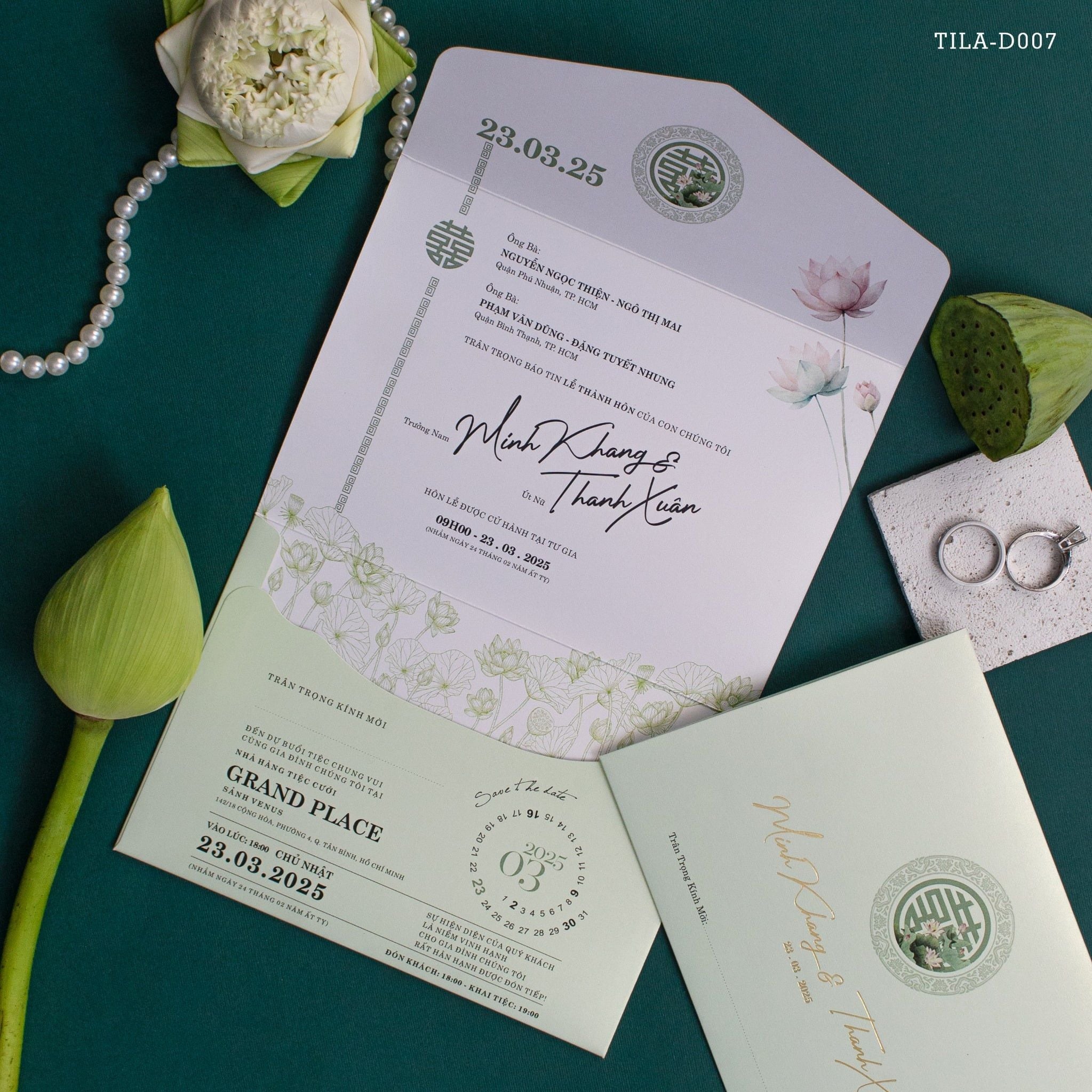 Thiệp Cưới Truyền Thống Hoa Sen Tinh Khiết 3 in 1 | TILA-D007